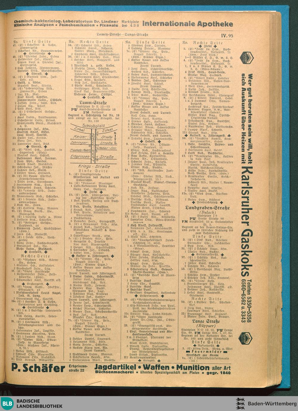 Adressbuch (Stadtbuch, Einwohnerbuch) der Landeshauptstadt Karlsruhe