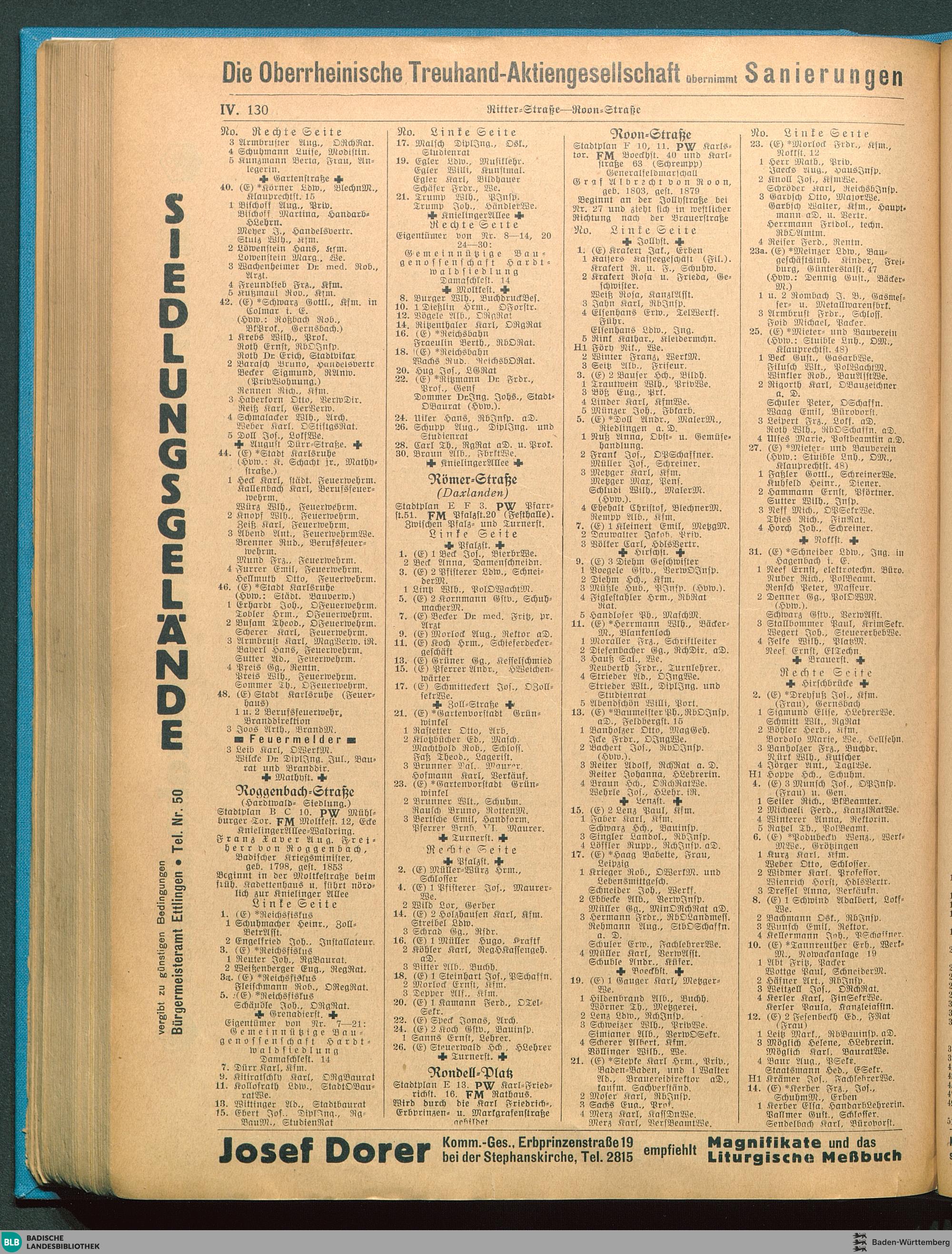 Adressbuch (Stadtbuch, Einwohnerbuch) der Landeshauptstadt Karlsruhe