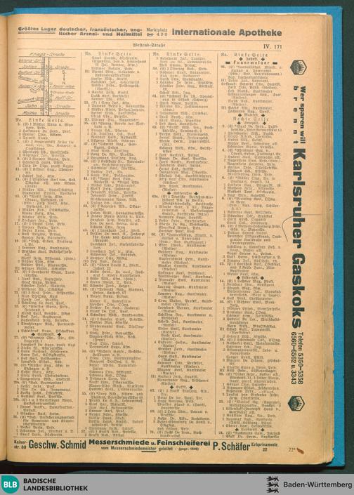Adressbuch (Stadtbuch, Einwohnerbuch) der Landeshauptstadt Karlsruhe