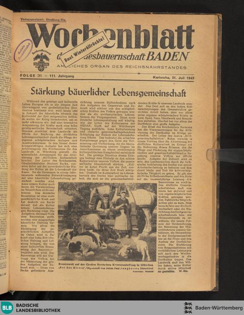 Wochenblatt der Landesbauernschaft Baden. 1935-1944