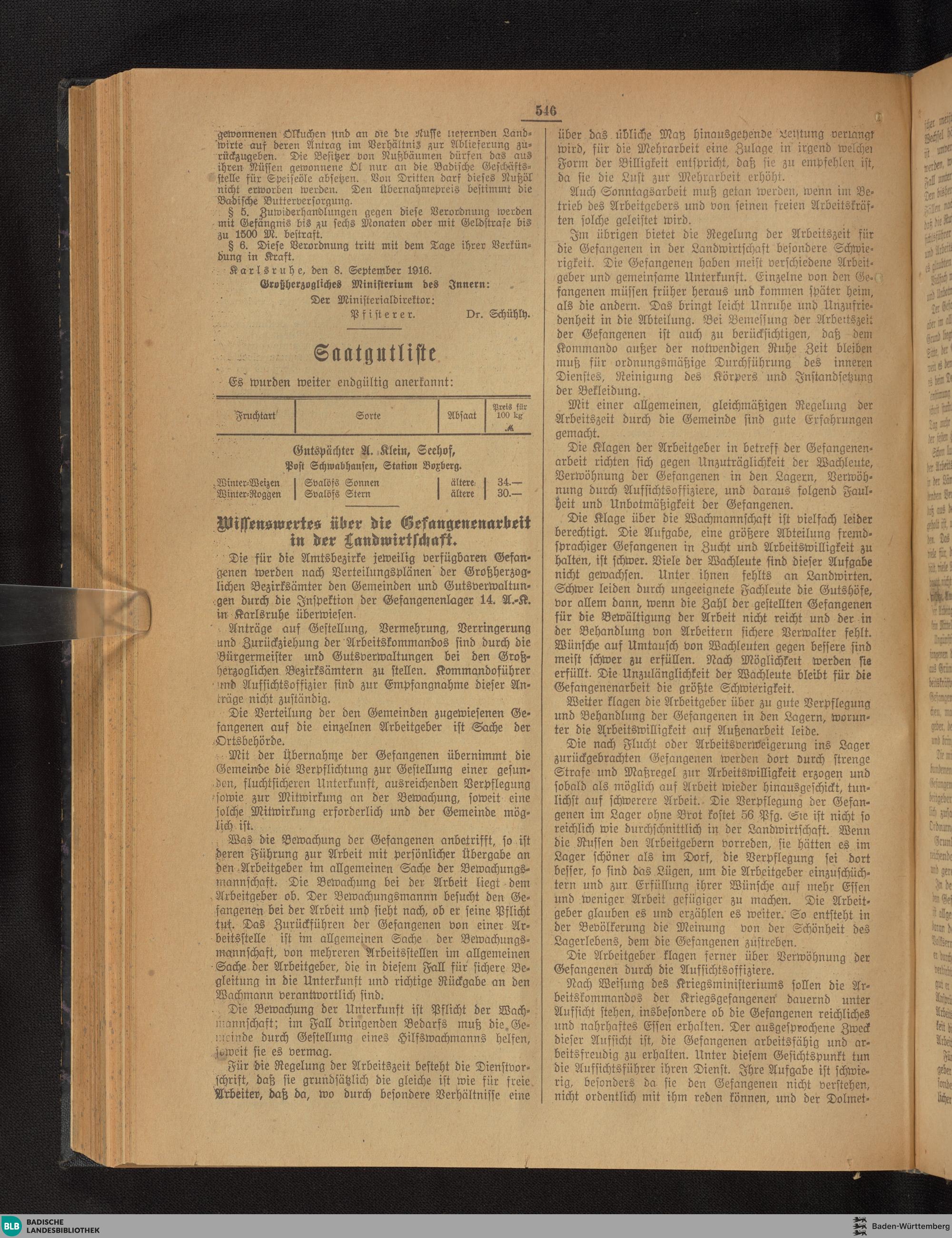 Badisches landwirtschaftliches Wochenblatt. 1911-1954
