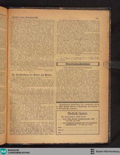 Badisches landwirtschaftliches Wochenblatt. 1911-1954
