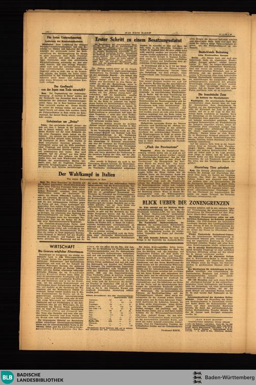 Das neue Baden. Kreisausgabe Stadt und Landkreis Lahr. 1947-1949