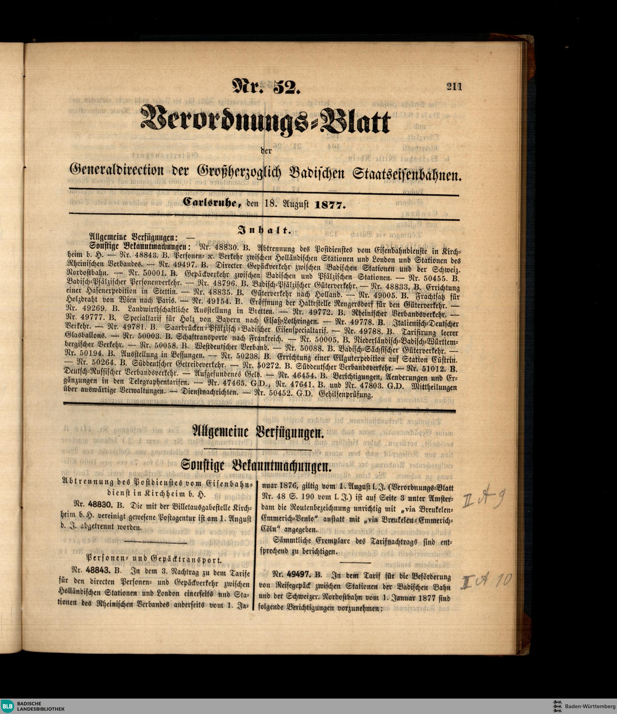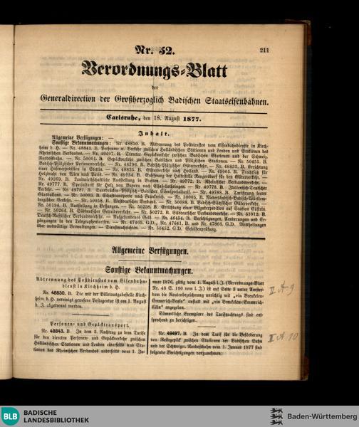 Verordnungs-Blatt der Generaldirektion der Badischen Staatseisenbahnen