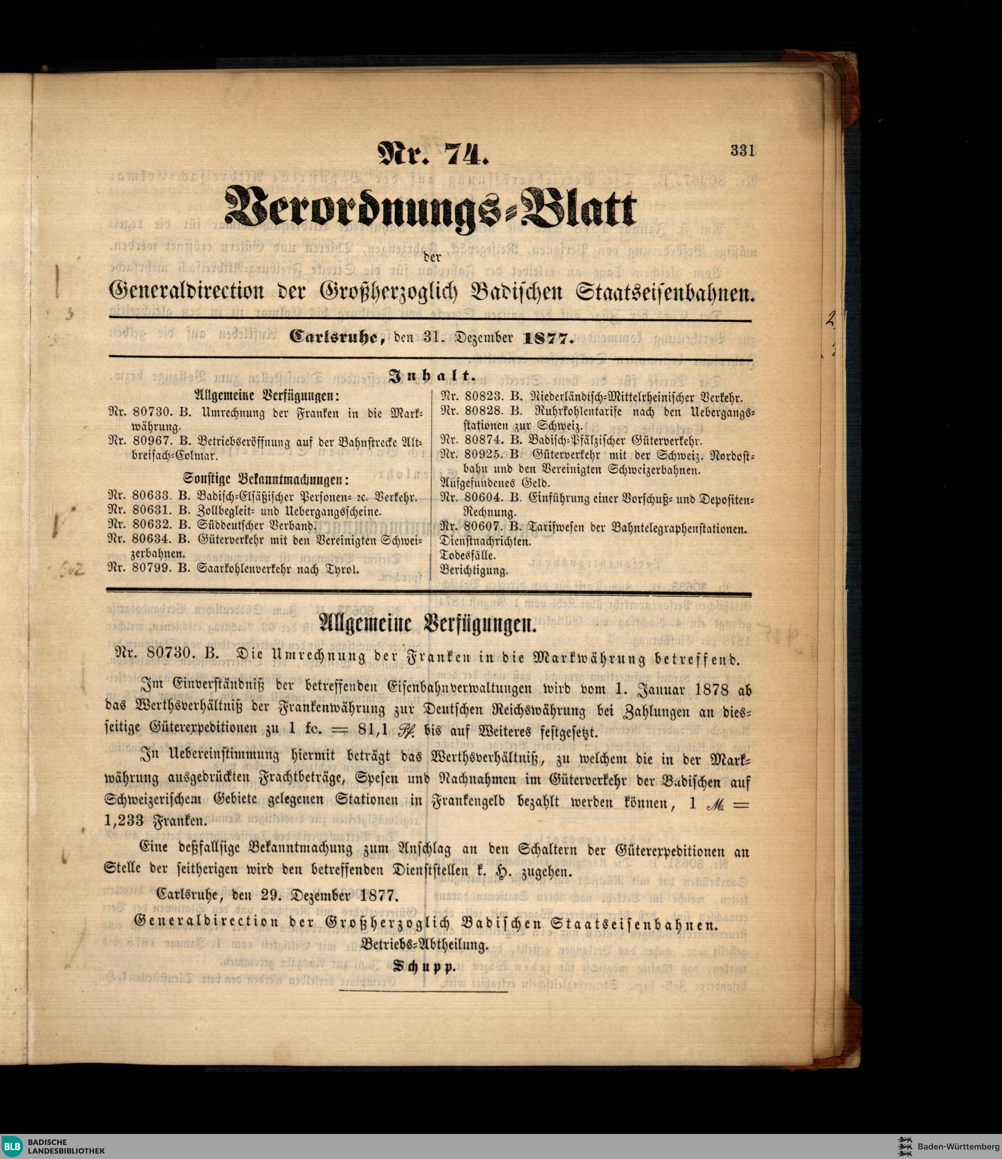 Verordnungs-Blatt der Generaldirektion der Badischen Staatseisenbahnen