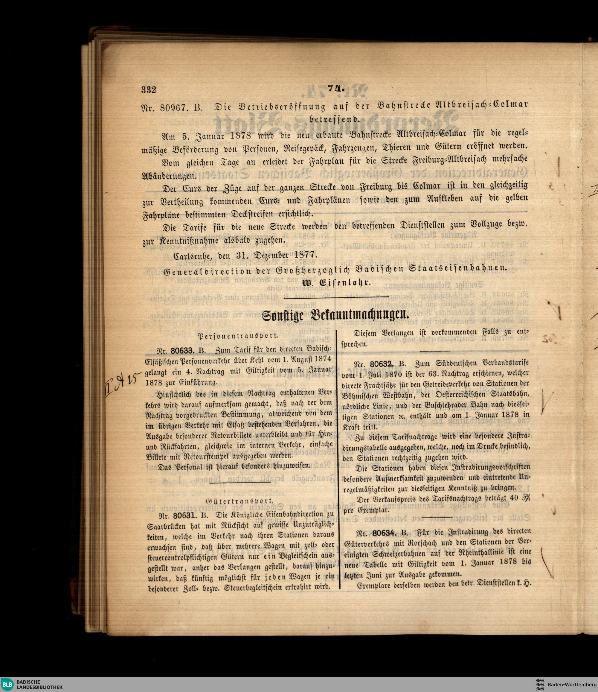 Verordnungs-Blatt der Generaldirektion der Badischen Staatseisenbahnen