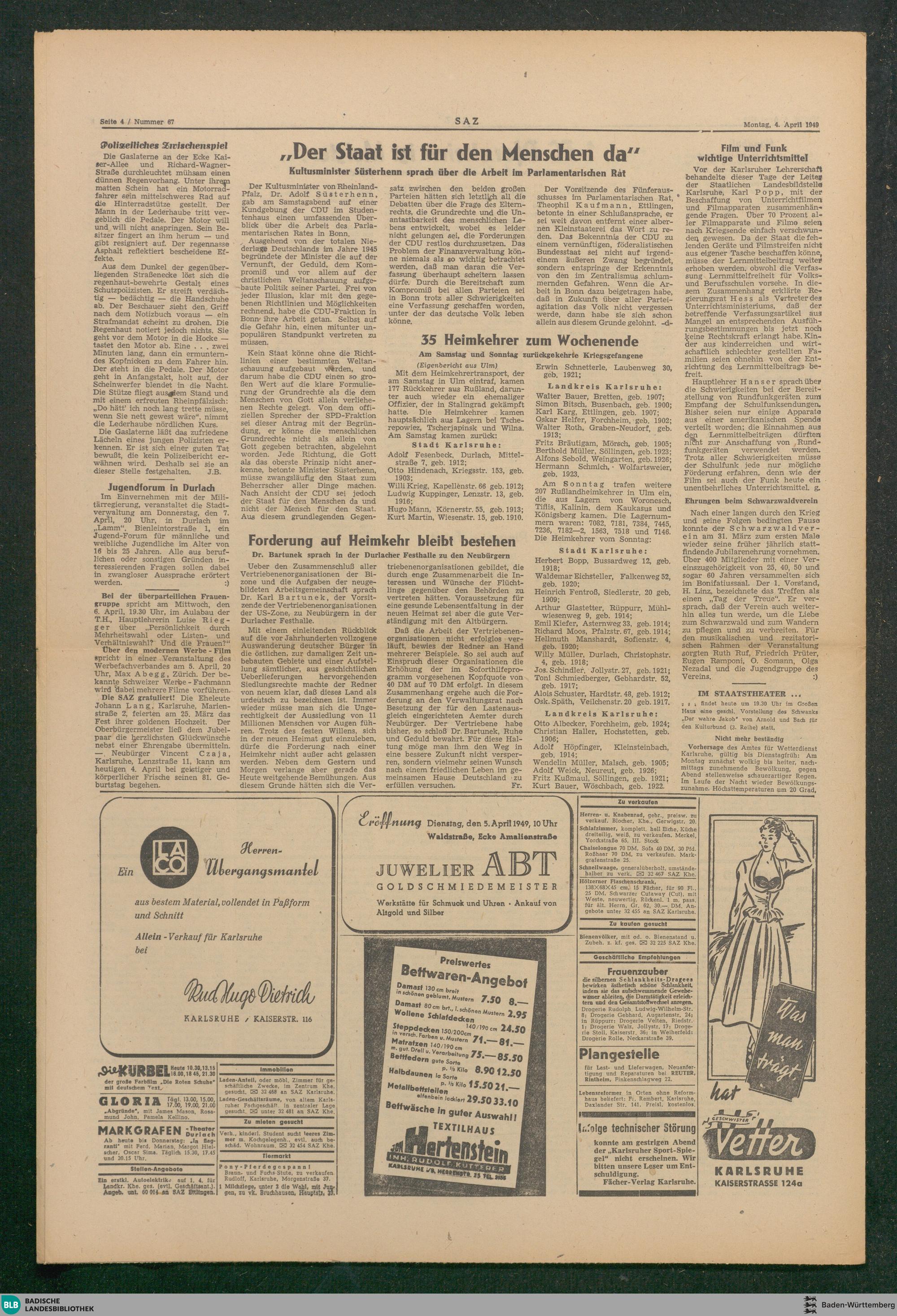 Karlsruher neue Zeitung. 1947-1949
