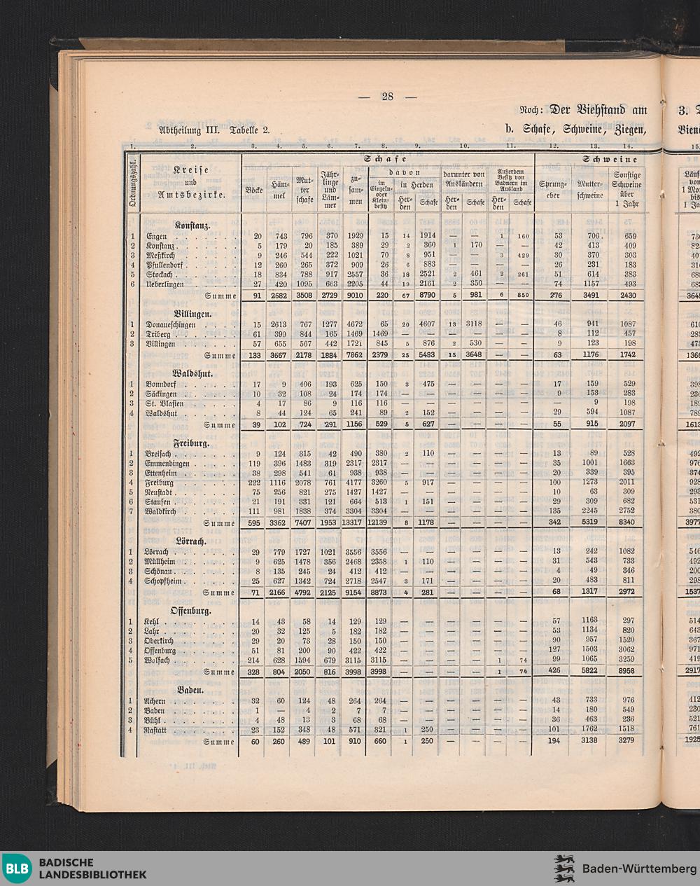 Abtheilung III. Der Viehstand und Viebesitz im Großherzogthum Baden nach der Zählung...