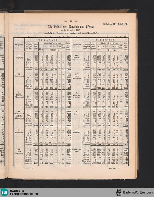 Abtheilung III. Der Viehstand und Viebesitz im Großherzogthum Baden nach der Zählung...