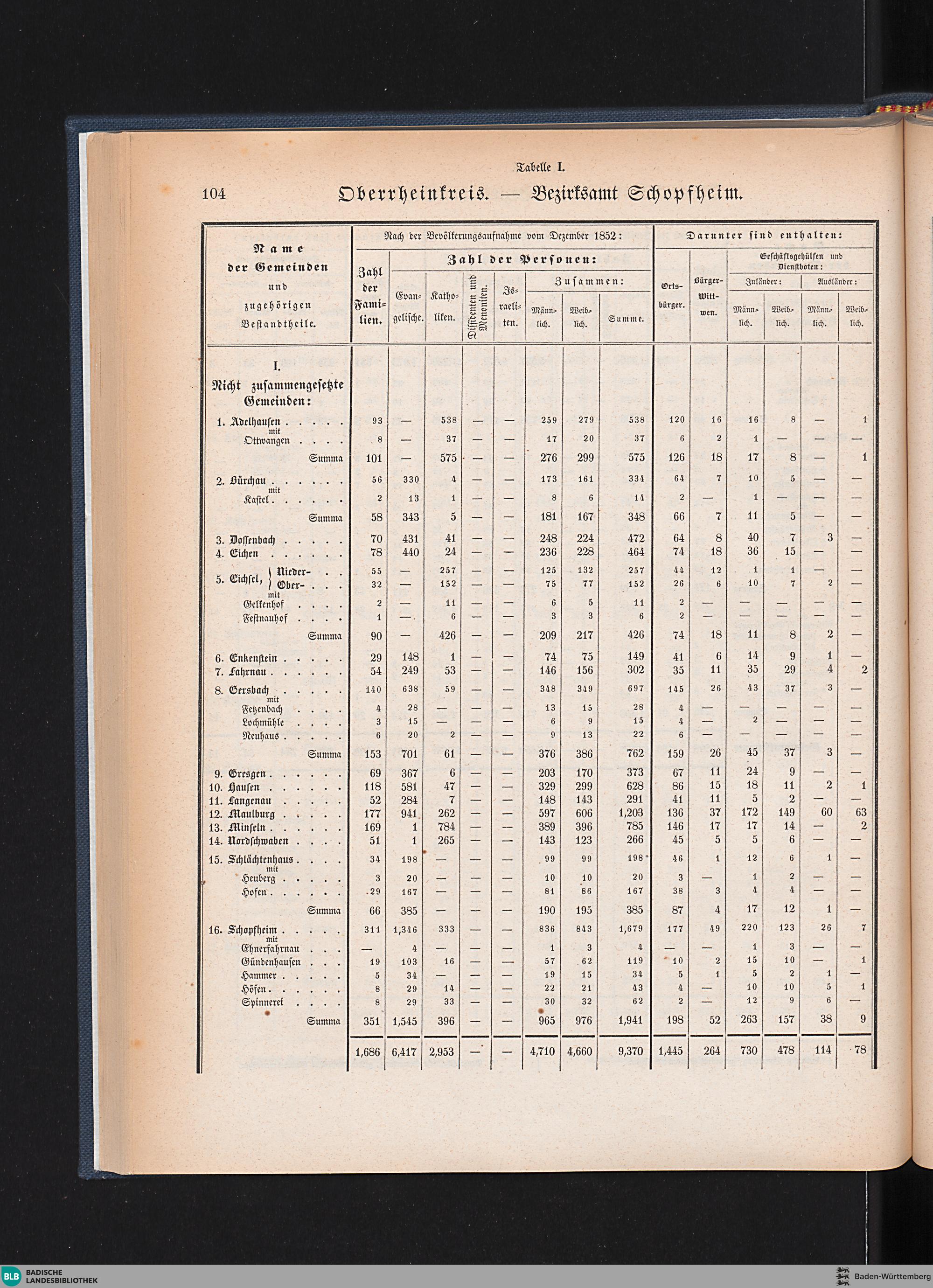 Tabelle I. Übersicht der Gemeinden, Colonien und abgesonderten Höfe mit Angabe der...