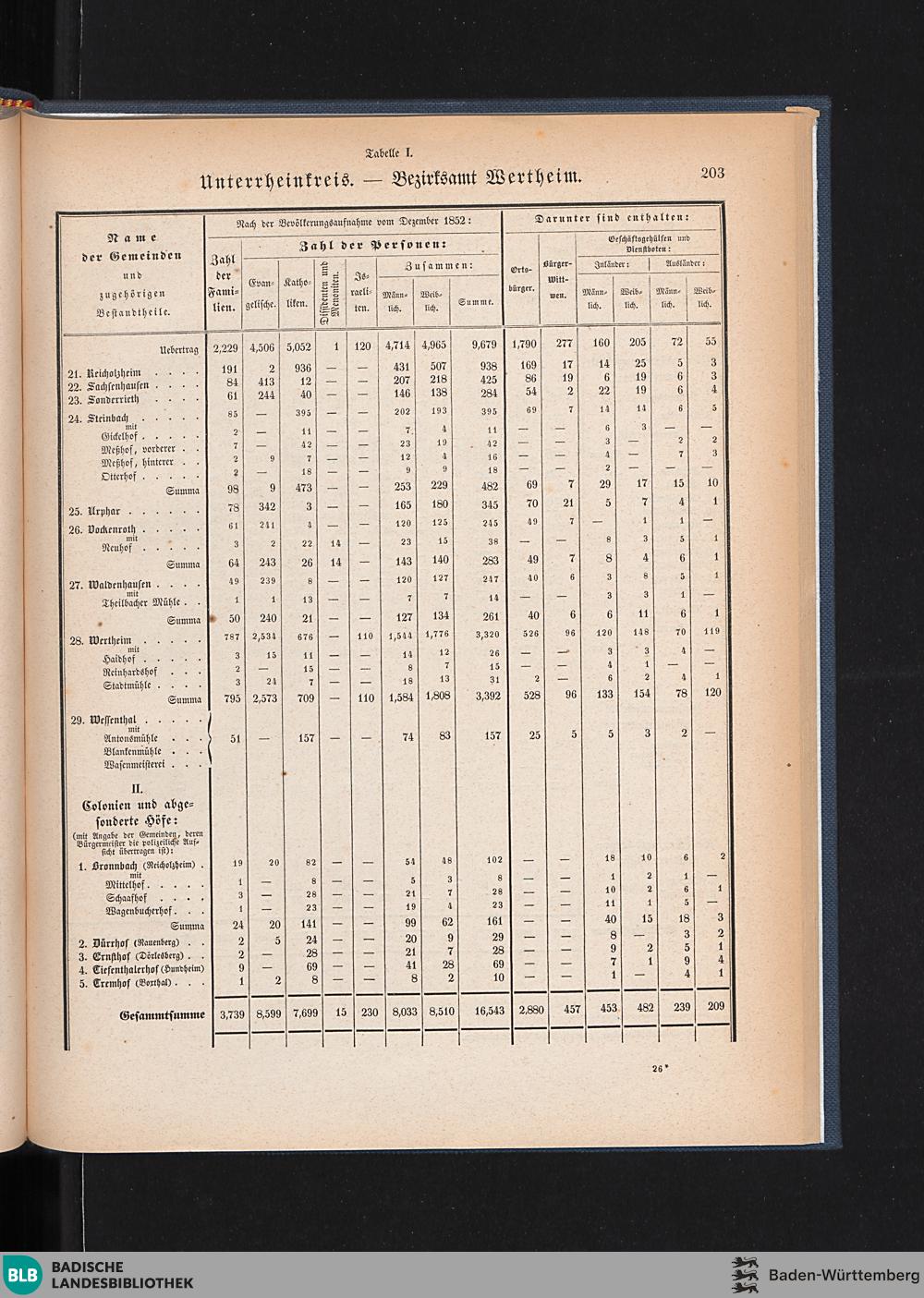 Tabelle I. Übersicht der Gemeinden, Colonien und abgesonderten Höfe mit Angabe der...