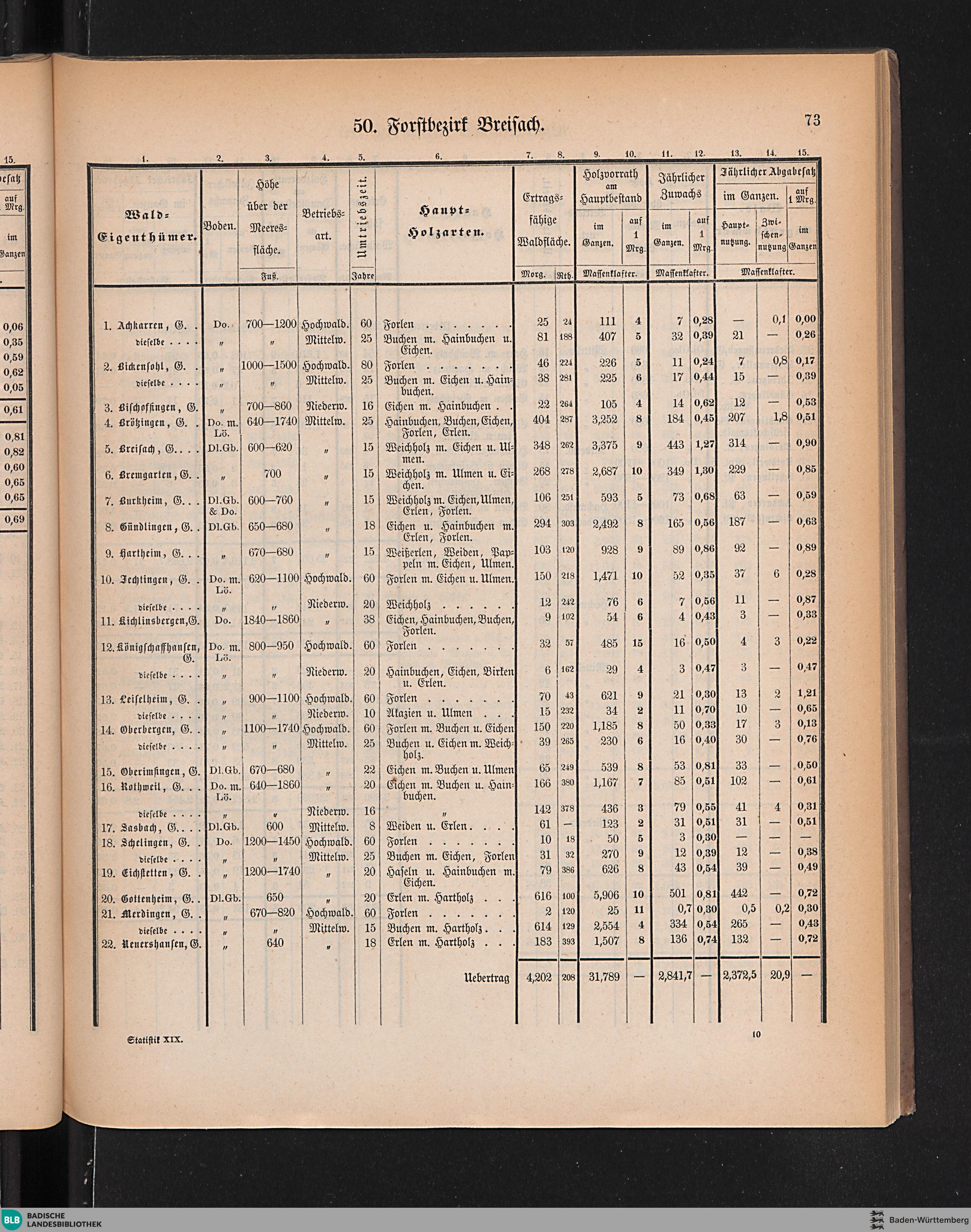 Tabelle: 50. Forstbezirk Breisach