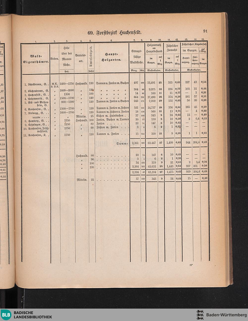 II. Uebersicht der Haupt-Ergebnisse der Forst-Einrichtung in den Gemeinden- und Körperschafts-...