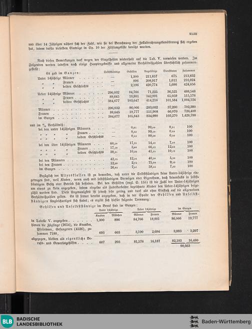B. Bevölkerung. (Tab. III. IV. V. und die Uebersichten der Tab. VI. S. 163 ff.)