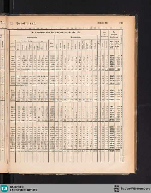 III. Uebersicht der anwesenden Bevölkerung nach Geschlecht, Religion und Staatsangehörigkeit,...