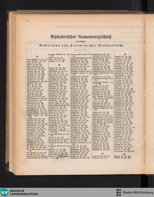 Alphabetisches Namensverzeichniß sämmtlicher Gemeinden und Colonien (mit Stabhal...