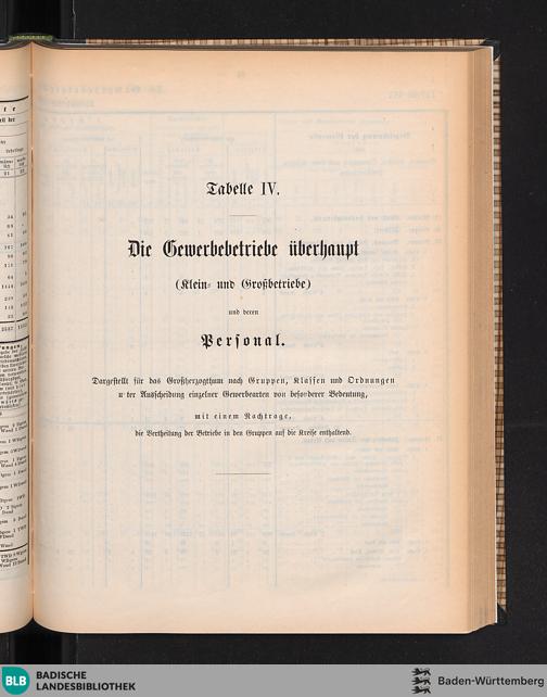 Tabelle IV. Die Gewerbebetriebe überhaupt und deren Personal