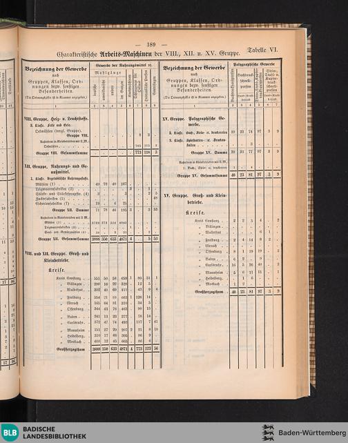 Tabelle VI. Die charakteristischen Arbeitsmaschinen