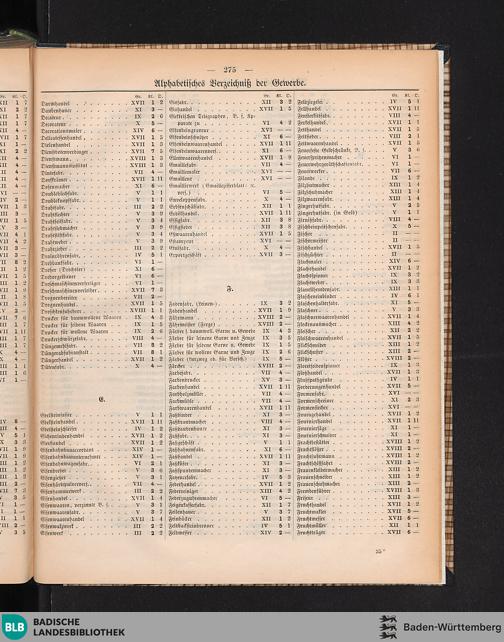 Alphabetisches Verzeichniß der Gewerbe