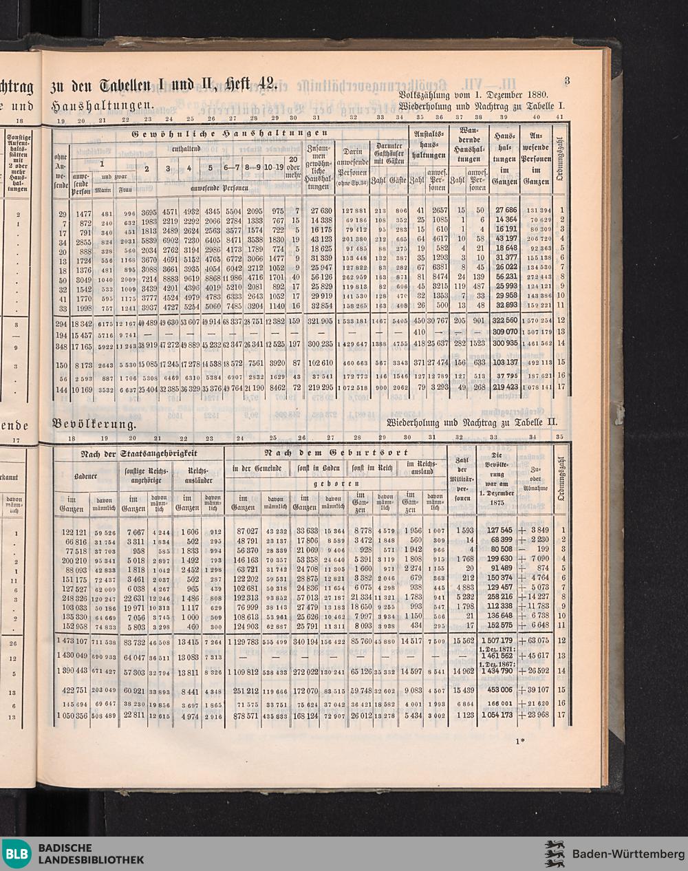 Volkszählung vom 1. Dezember 1880. Tabellen. Zweiter Theil, mit Wiederholung der...