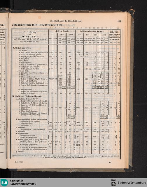 D. Vergleichende Uebersicht der Ergebnisse der Gewerbeaufnahmen von 1847, 1861, 1875...