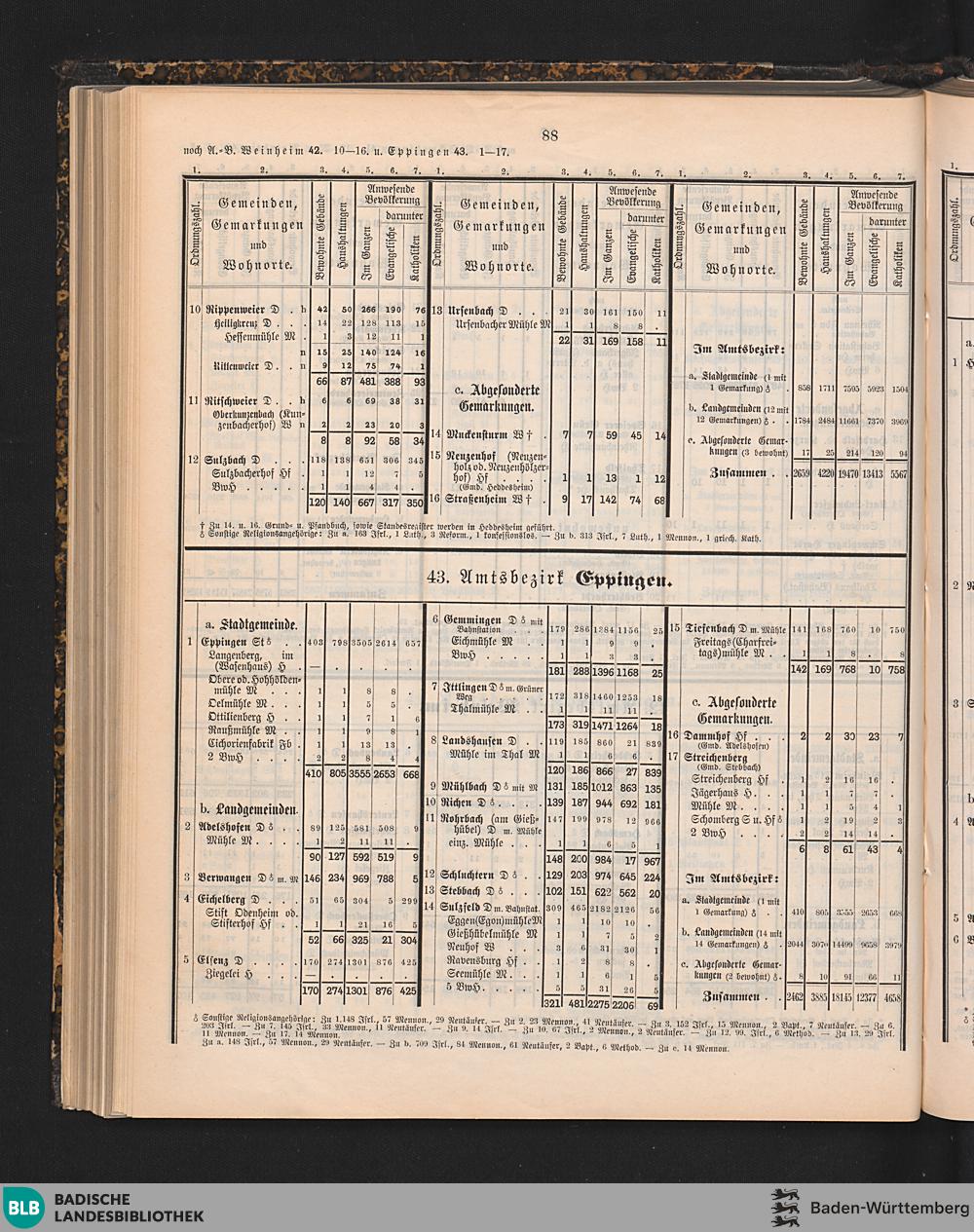 I. Gemeinden, Gemarkungen und Wohnorte des Großherzogthums Baden und ihre Bevölk...
