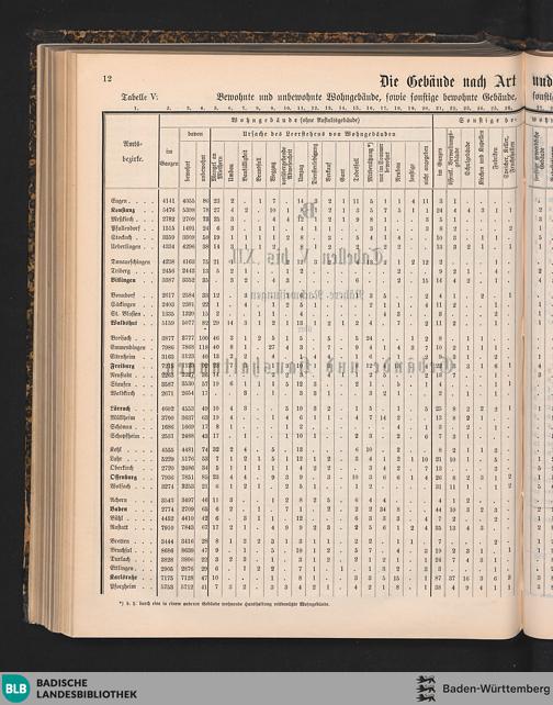 B. Tabellen V bis XII. Nähere Nachweisungen über Gebäude und Haushaltungen