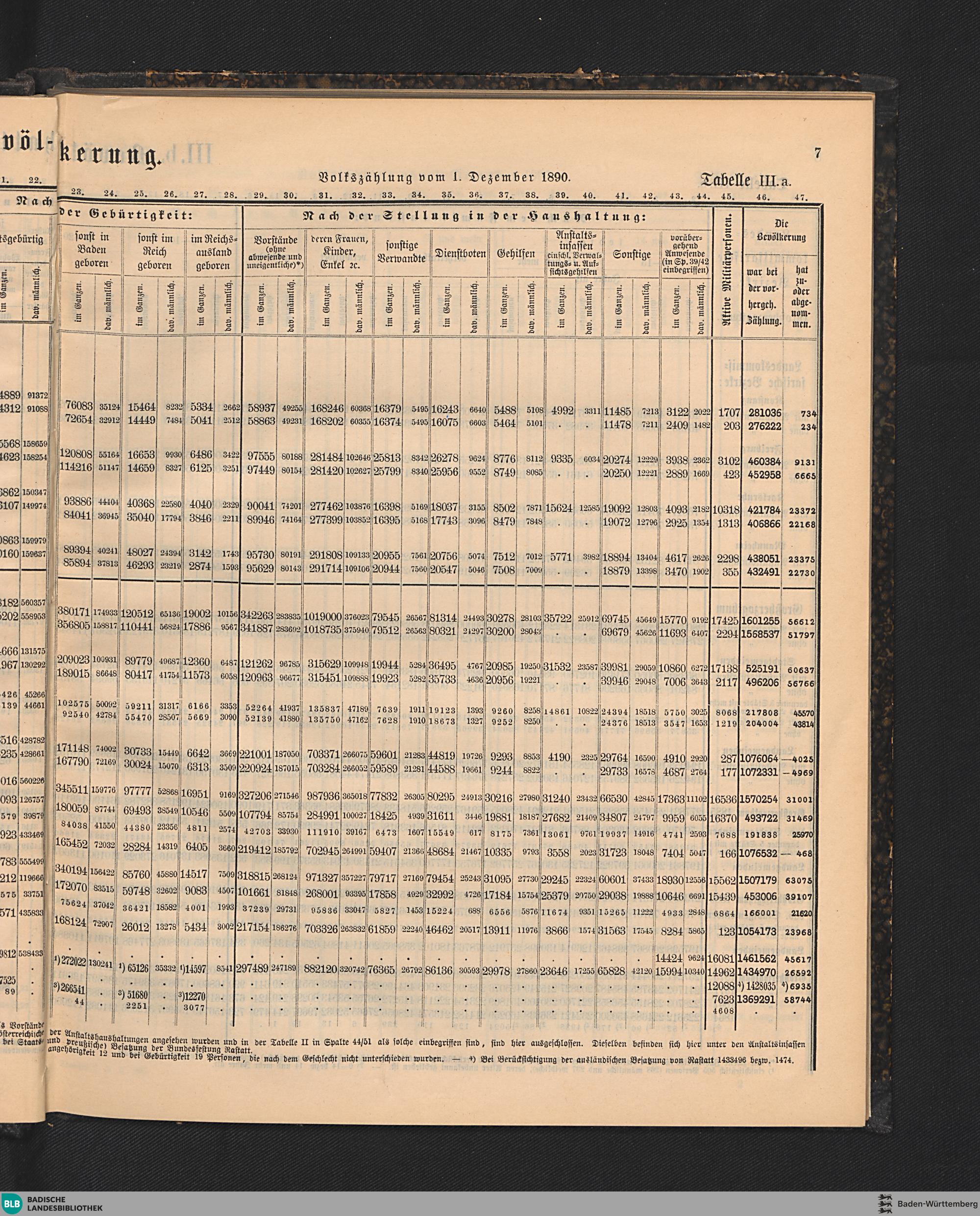 Tabelle IIIa. Bevölkerung