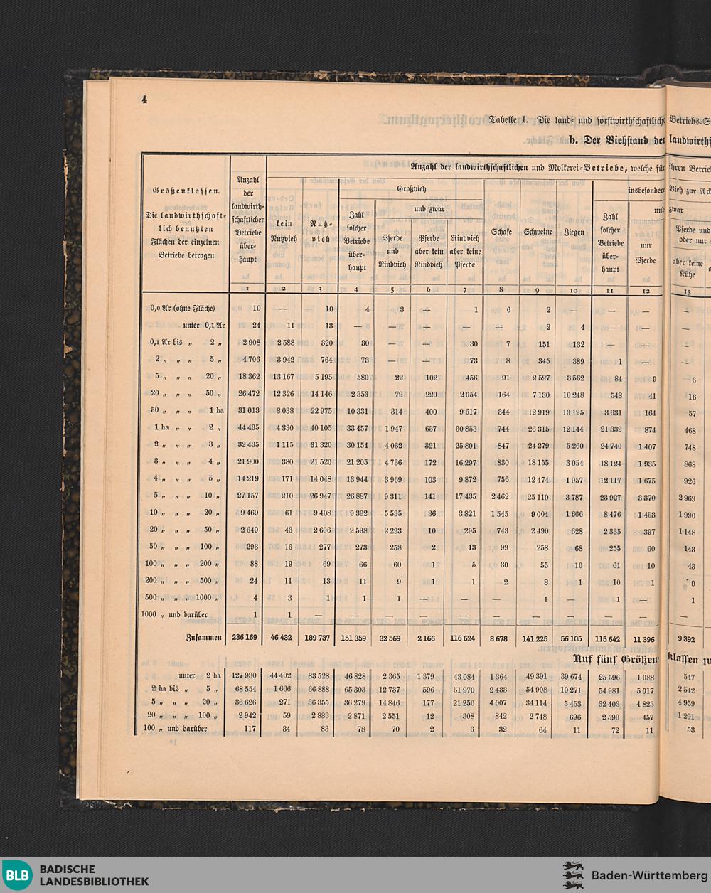 Tabelle 1. Die land- und forstwirthschaftliche Betriebs-Statistik für das Großhe...