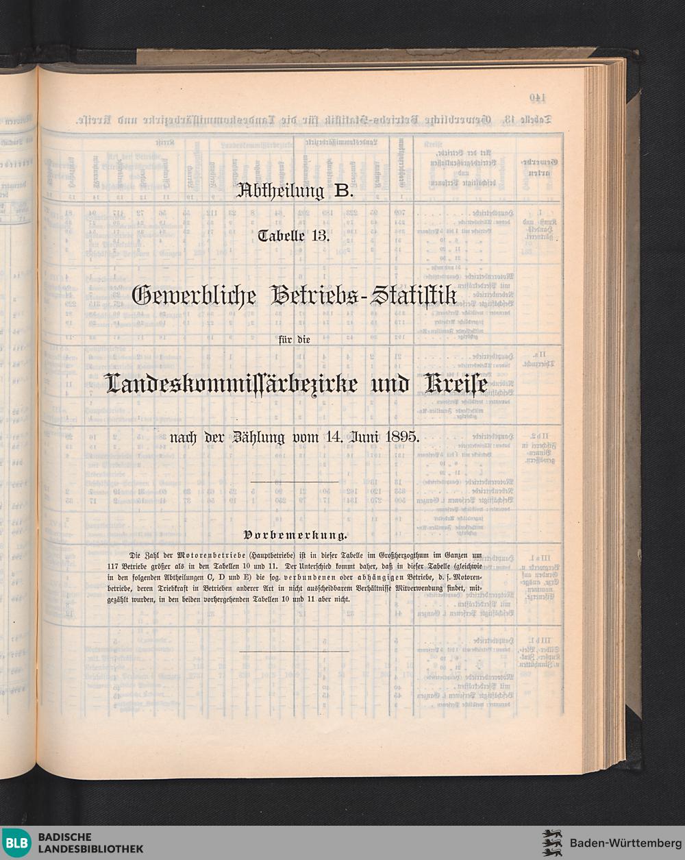 Abtheilung B. Tabelle 13. Gewerbliche Betriebs-Statistik für die Landeskommissärbezirke...