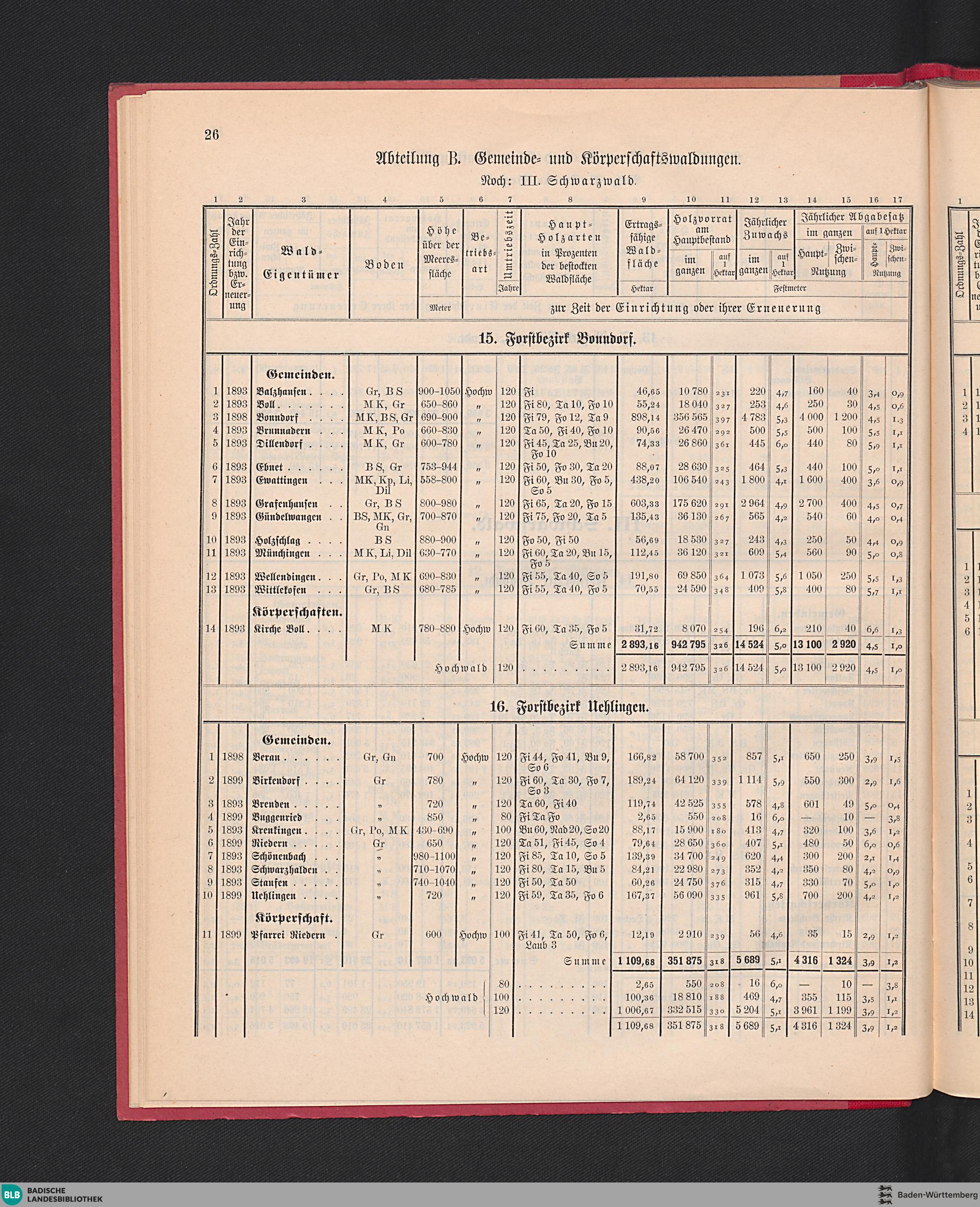 B. Die Hauptergebnisse der Forsteinrichtung in den Gemeinde- und Körperschaftswaldungen...