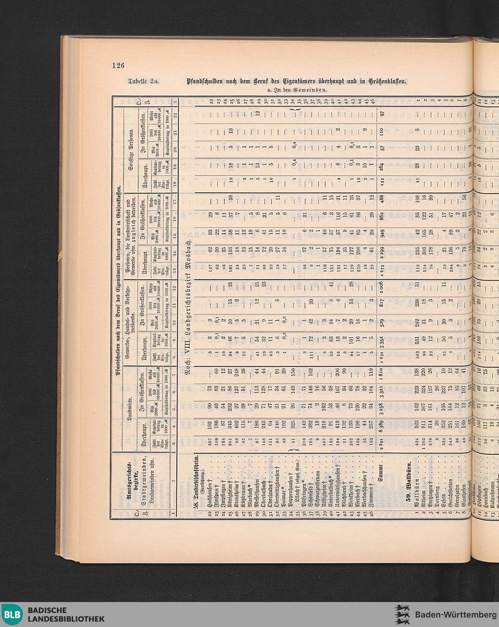 Tabelle 2. Die Pfandschulden nach dem Beruf des Eigentümers überhaupt und in Grö...