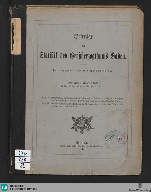 Beiträge zur Statistik des Großherzogtums Baden - digitalisiert
