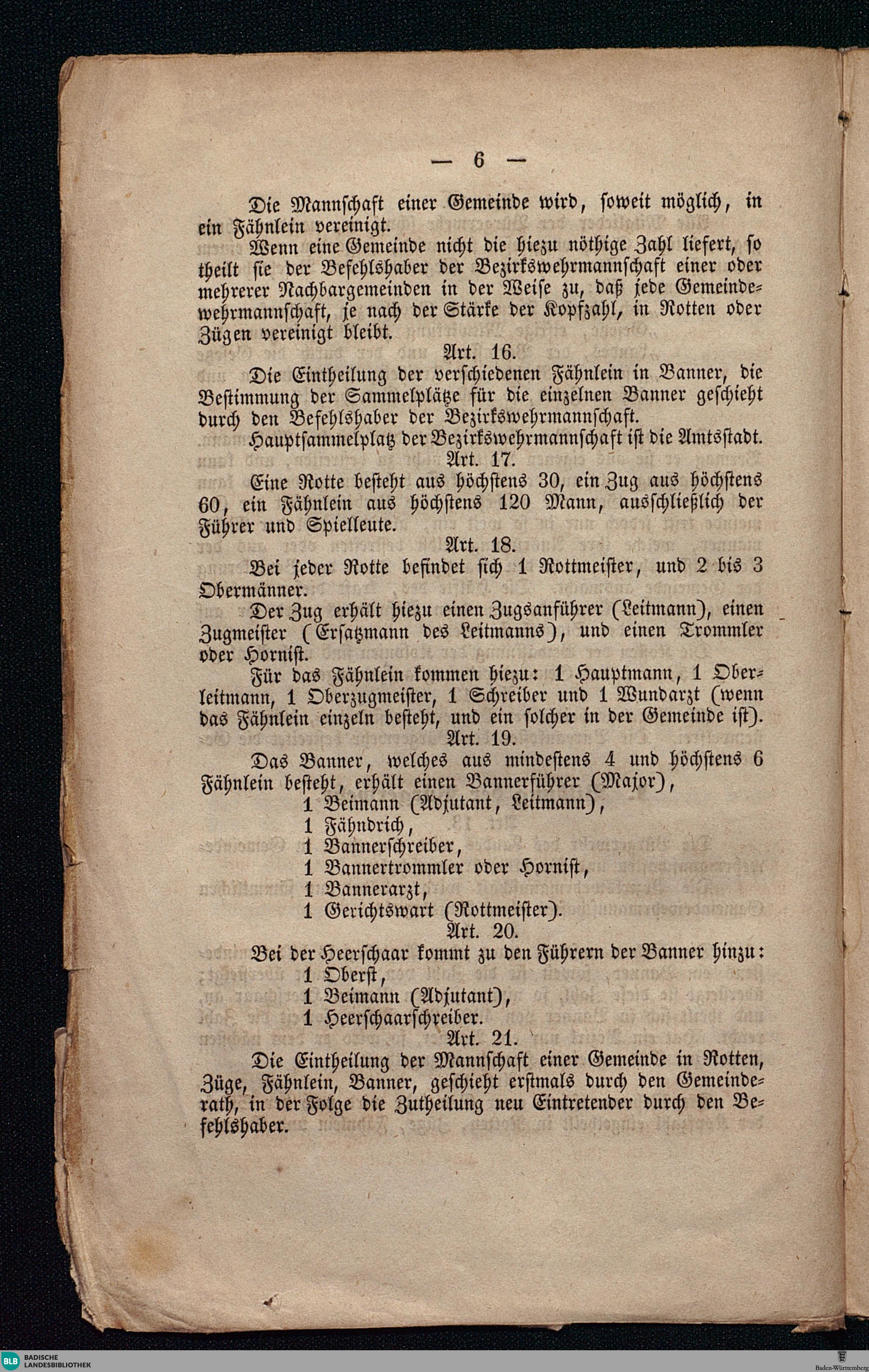Gesetz über die Errichtung der Bürgerwehr im Großherzogthum Baden / [Leopold, von Gottes Gnaden Großherzog von Baden ...]