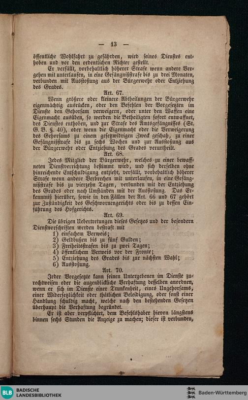 Gesetz über die Errichtung der Bürgerwehr im Großherzogthum Baden / [Leopold, von Gottes Gnaden Großherzog von Baden ...]