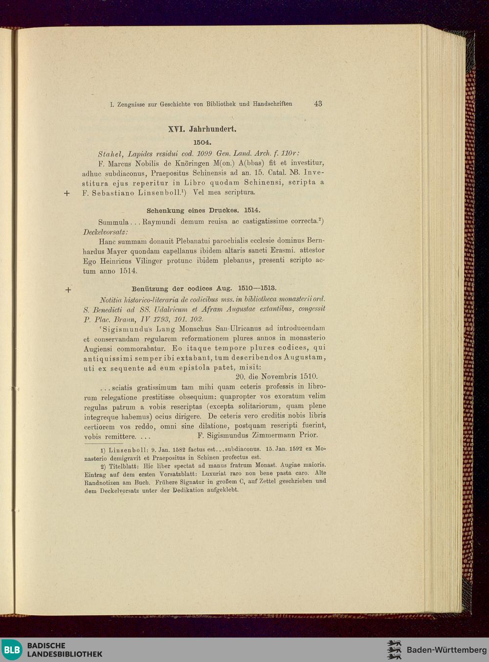 I. Zeugnisse zur Geschichte von Bibliothek und Handschriften