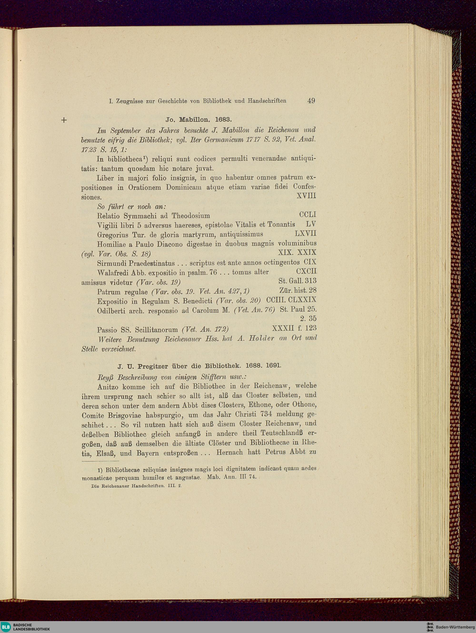 I. Zeugnisse zur Geschichte von Bibliothek und Handschriften