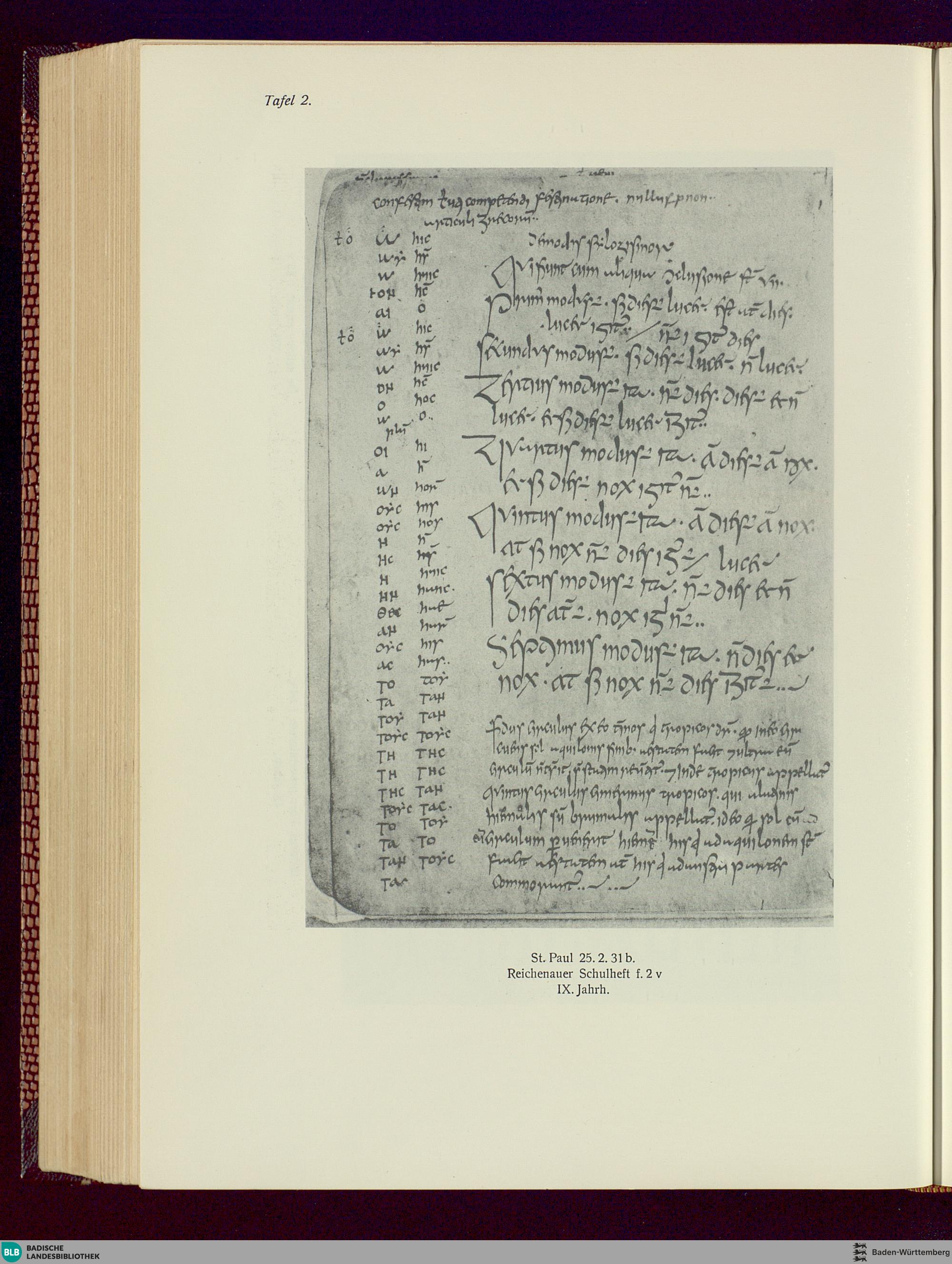 Illustration: Tafel II. St. Paul 25.2.31b. Reichenauer Schulheft f. 2v. IX. Jahr...
