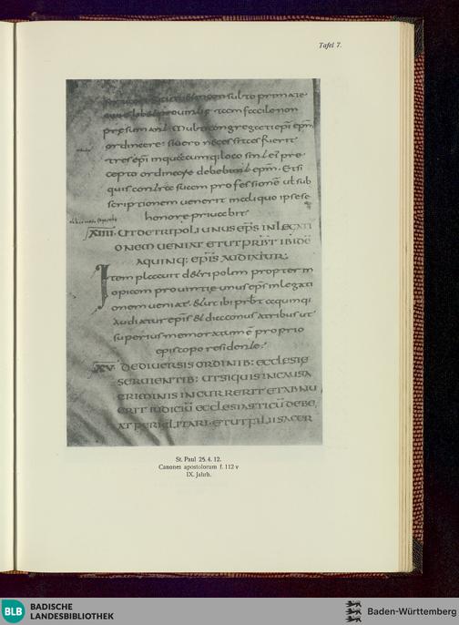 Illustration: Tafel VII. St. Paul 25.4.12. Canones apostolorum f. 112v. IX. Jah...
