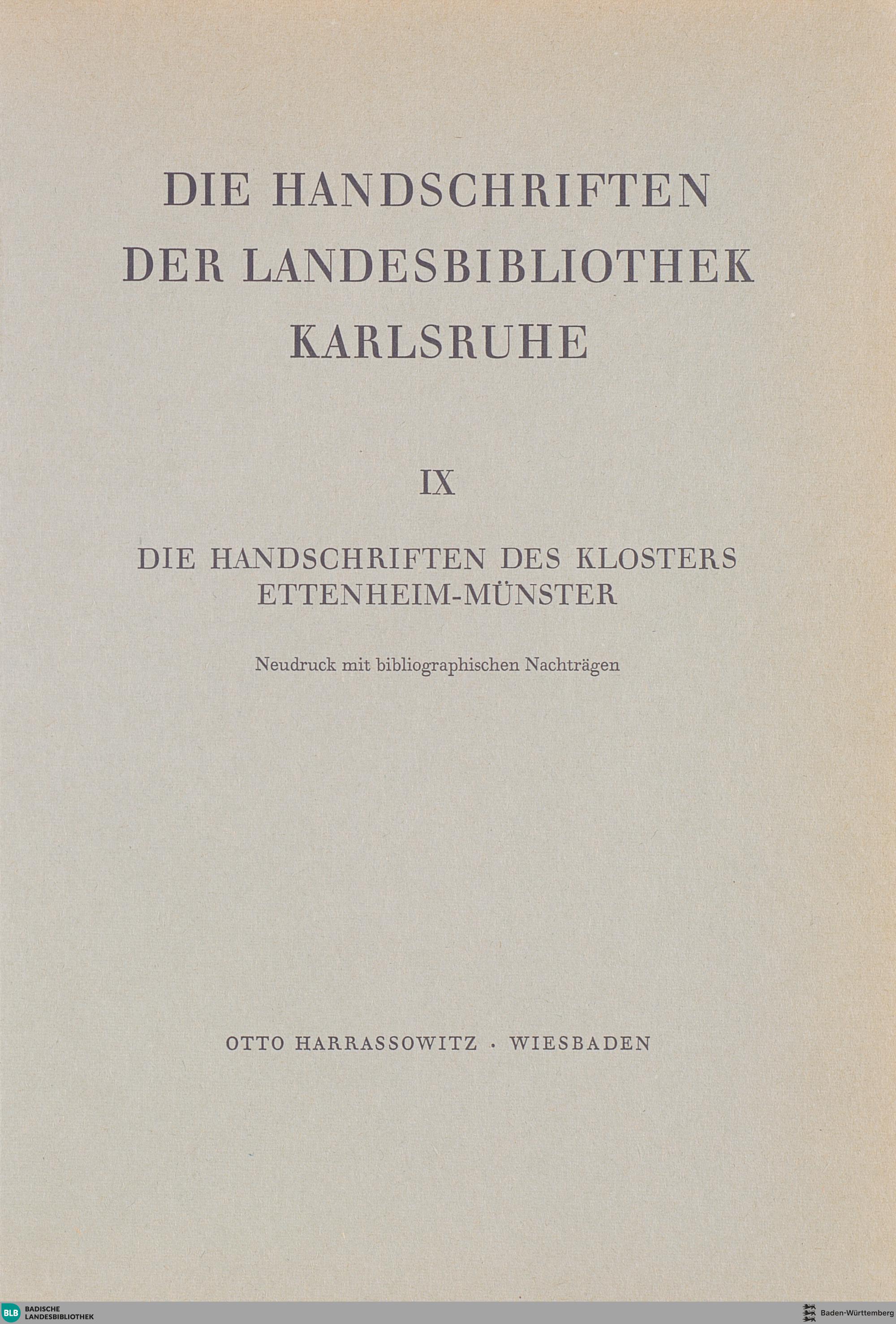 9 (1973) Die Handschriften des Klosters Ettenheim-Münster / aufgenommen von Karl Preisendanz