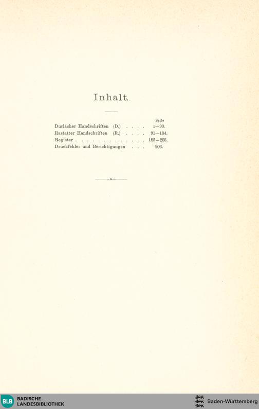 3 (1970) Die Durlacher und Rastatter Handschriften / beschr. v. Alfred Holder