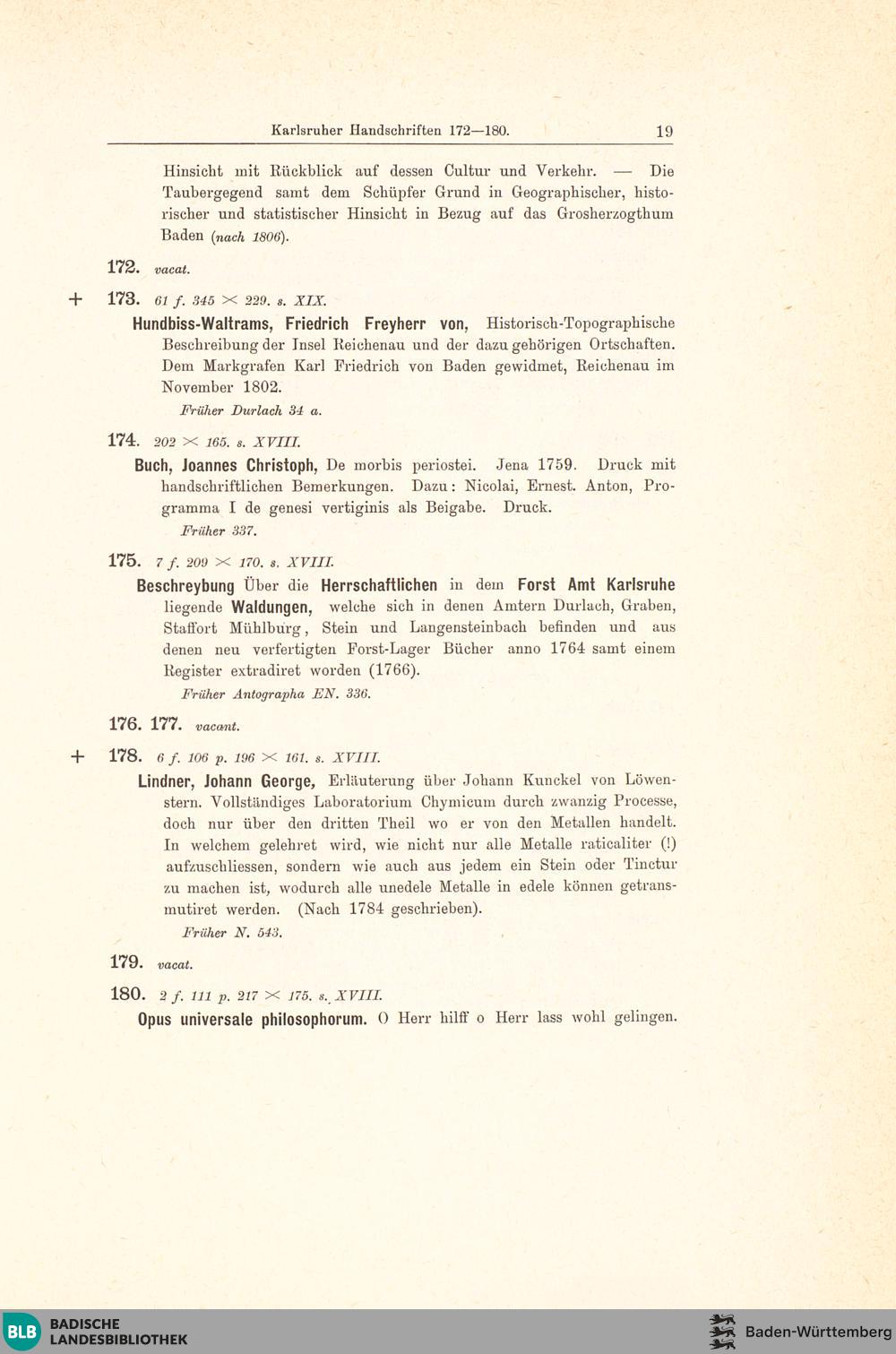 Die Handschriften der Badischen Landesbibliothek in Karlsruhe