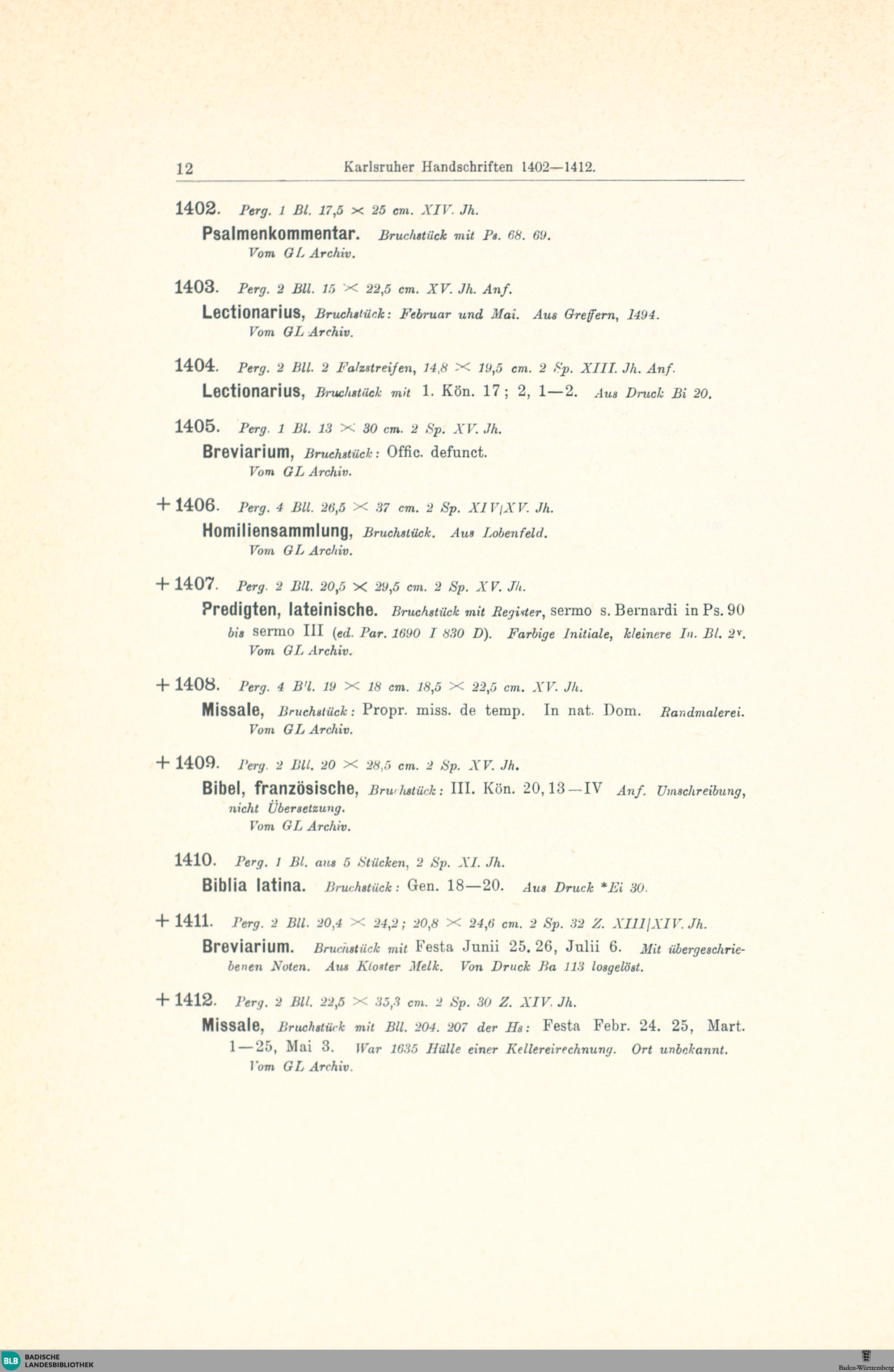 Die Handschriften der Badischen Landesbibliothek in Karlsruhe