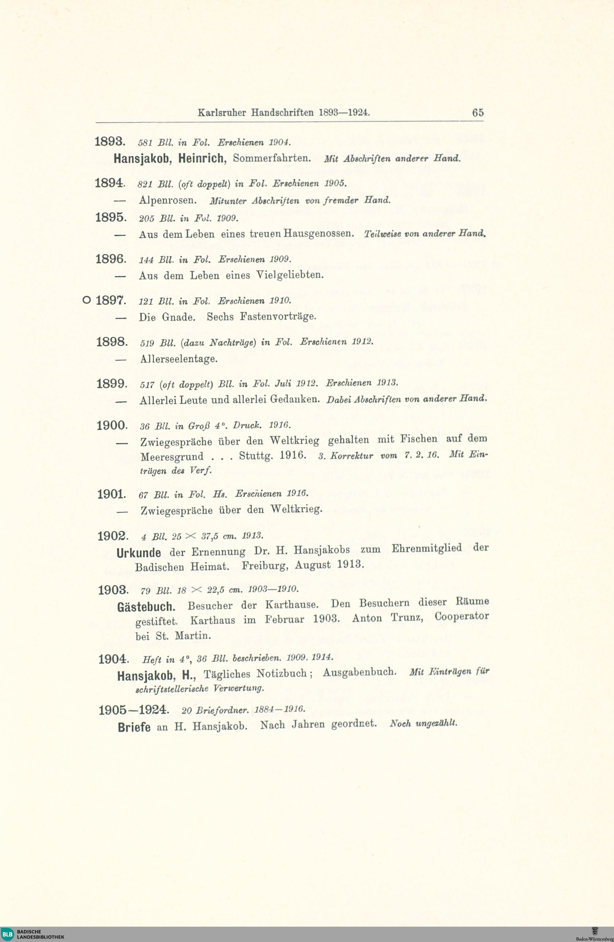 Die Handschriften der Badischen Landesbibliothek in Karlsruhe