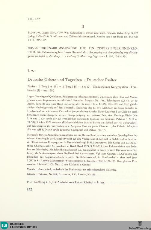 11 (1987) Die Handschriften von Lichtenthal / beschrieben von Felix Heinzer und Gerhard Stamm