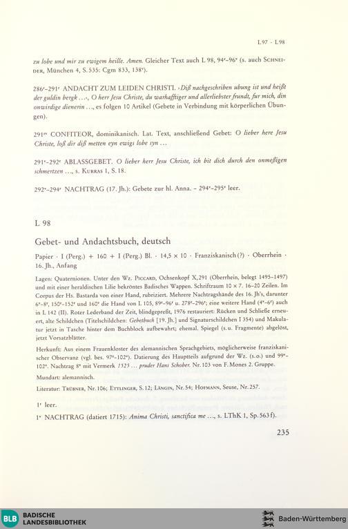 11 (1987) Die Handschriften von Lichtenthal / beschrieben von Felix Heinzer und Gerhard Stamm