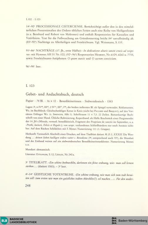 11 (1987) Die Handschriften von Lichtenthal / beschrieben von Felix Heinzer und Gerhard Stamm
