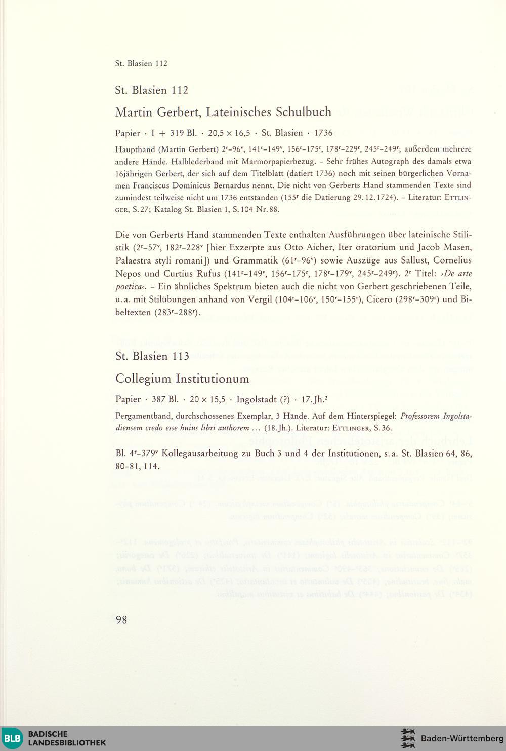 12 (1991) Die Handschriften von St. Blasien / beschrieben von Peter Höhler und Gerhard Stamm