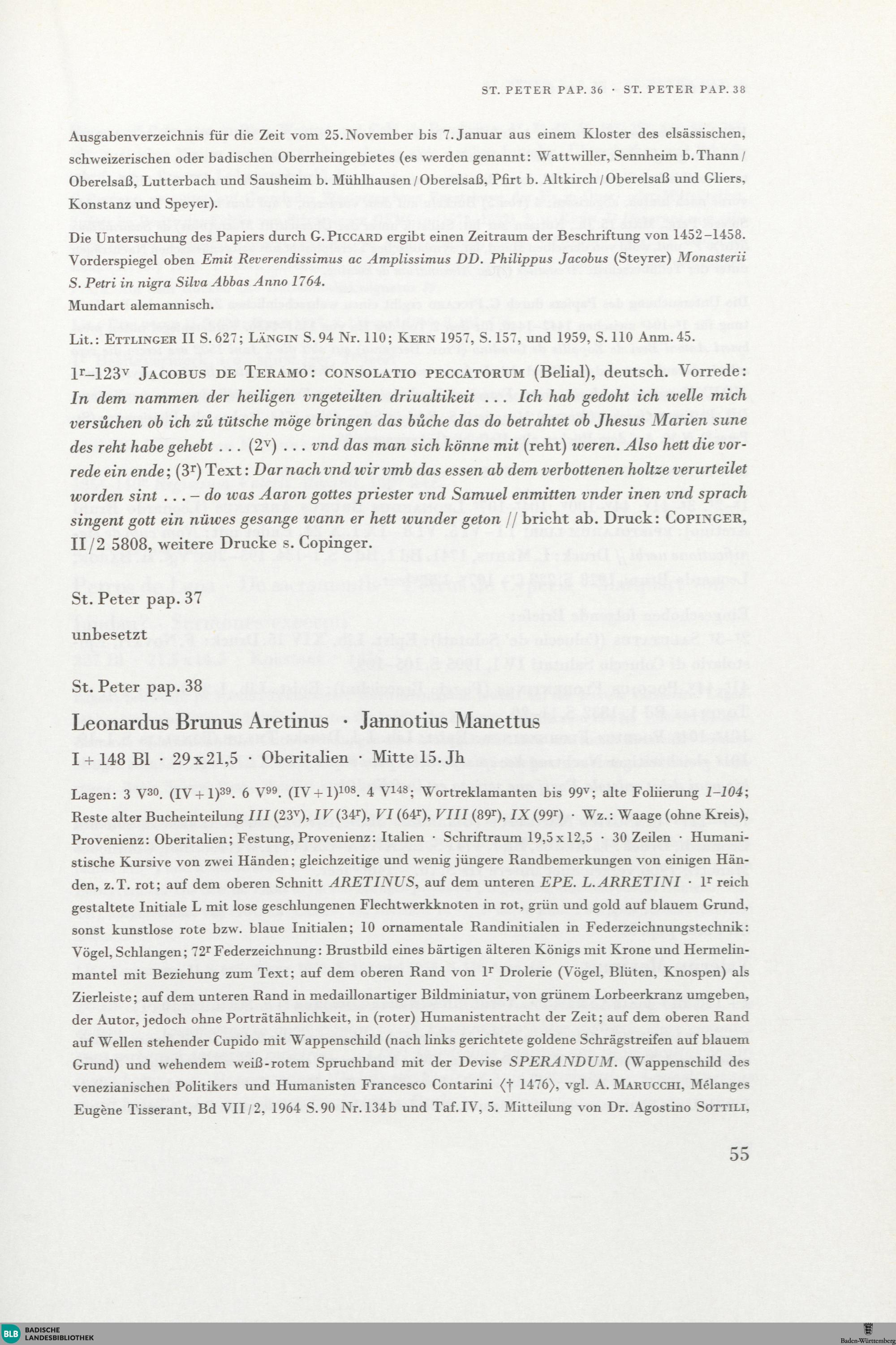 10,1 (1969) Die Handschriften von St. Peter im Schwarzwald : Die Papierhandschriften / beschrieben von Klaus Niebler