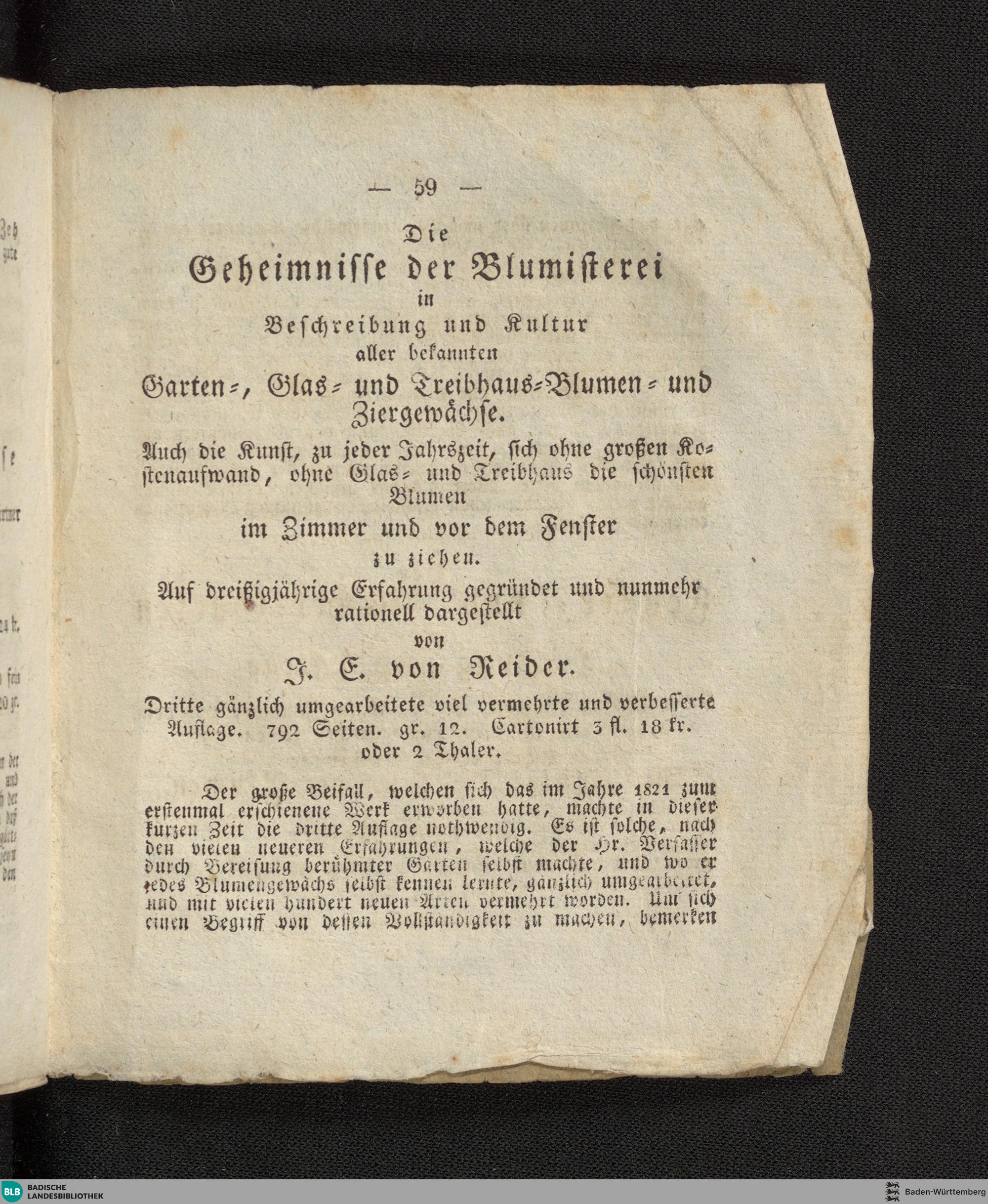 Anleitung zur leichtesten und zweckmäßigsten Hyacinthenzucht im Garten und im Zimmer : sammt der Beschreibung des Saamenhändlers Falcke zu Nürnberg berühmten Hyacinthenflors : auf dreisigjährige Erfahrung mit zu Grundlegung aller ältern und neuern Beobachtungen berühmter Blumisten / von Jacob Ernst von Reider, königl. bayer. erstem Landgerichts-Assessor, mehrerer gelehrten, ökonomischen Gesellschaften Mitgliede